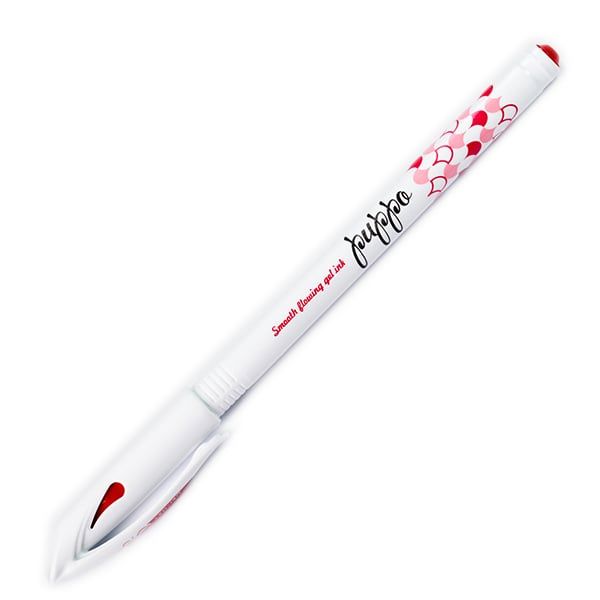 Thân bút làm bằng nhựa trắng đục chắc chắn, đuôi bút pha màu tương ứng với màu mực, vừa đẹp mắt vừa giúp người dùng dễ dàng nhận biết.