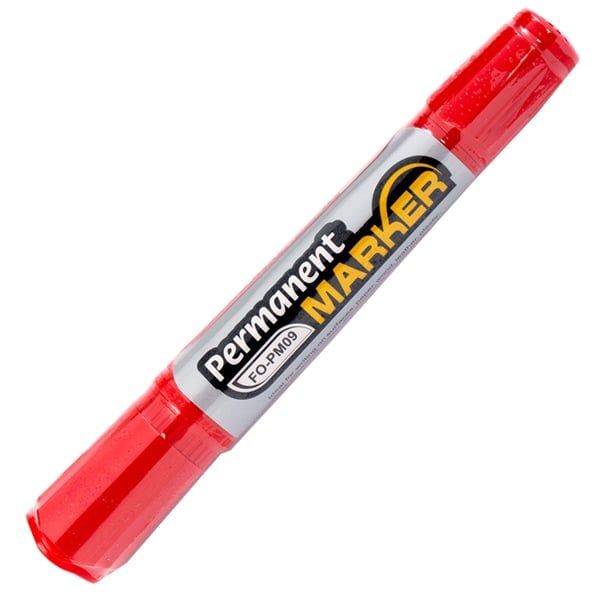 FO-PM-09 có 2 đầu: ngòi nhỏ 0.8mm để ghi chú chi tiết và ngòi vát 6mm để viết to, đánh dấu trên carton hoặc bảng biểu.