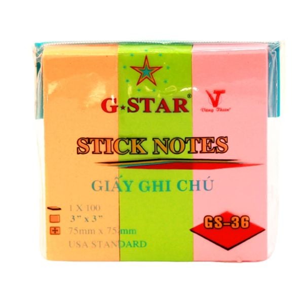 Giấy ghi chú 3×3 G-STAR GS-36 | Sticky notes 3 màu 75×75mm