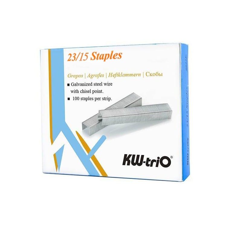 Kim bấm 23/15 KW-Trio (Item No. 0023F) là dòng ghim bấm Heavy Duty chuyên dụng, thiết kế cho nhu cầu cố định các tập hồ sơ và tài liệu dày. Với cấu tạo từ thép mạ kẽm chống gỉ và đầu vát (chiseled point), sản phẩm giúp xuyên giấy dễ dàng, giảm kẹt ghim và đảm bảo độ bền lâu dài.