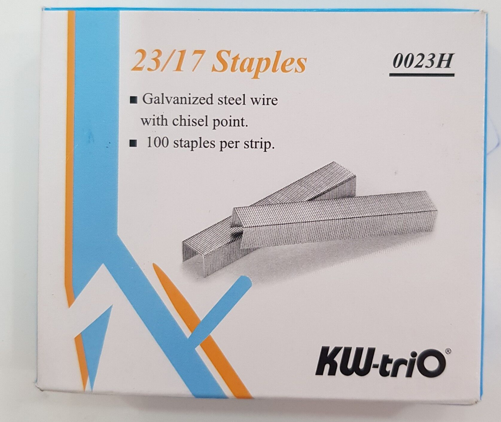 🔹 Kim bấm 23/17 KW-Trio 0023H – thép mạ kẽm, đầu vát (chiseled point), ghim chắc tập hồ sơ dày 130–160 tờ.